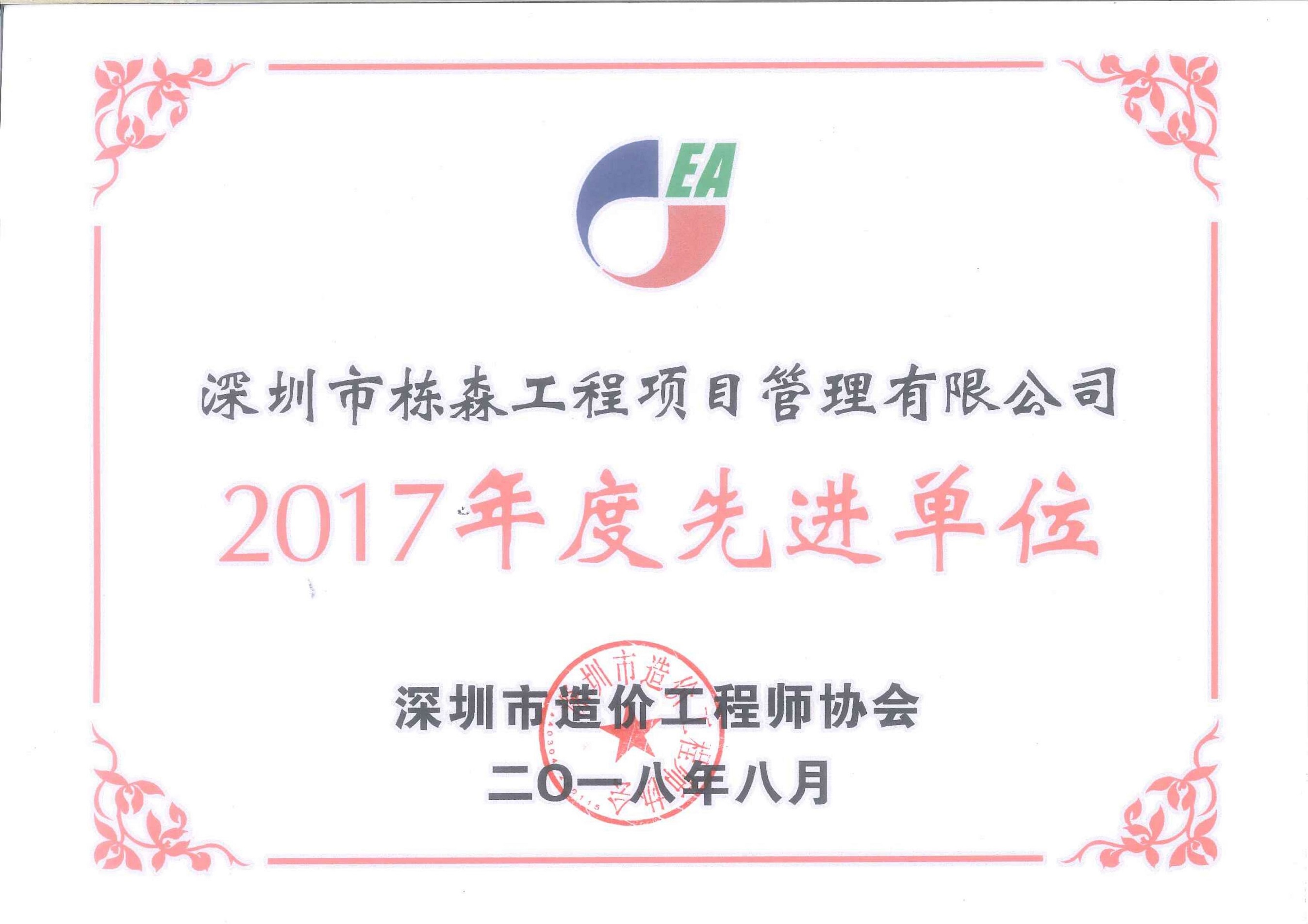 深圳市造價工程師協會2017年度先進會員單位