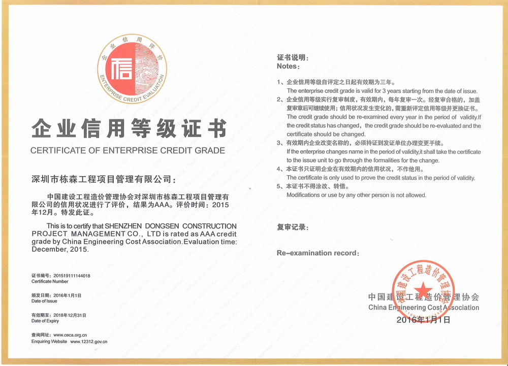 深圳市棟森工程項目管理有限公司本著"實在做事、厚道做人、感恩社會"的經營理念,力求通過誠信為基石,保持公司健康的可持續性發展。